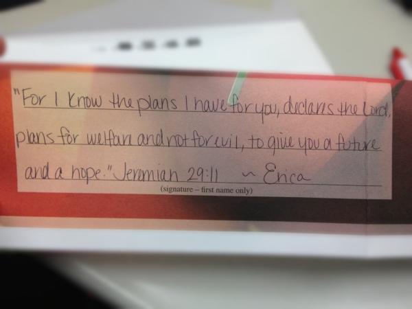 I chose this verse from the Bible, “For I know the plans I have for declares the Lord, plans of welfare and not for evil, to give you a future and a hope.”